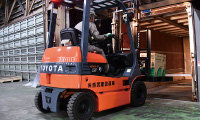 ころ付のパレットに荷物を載せ奥へ移動させるため、荷物を優しく積込むことができます。
